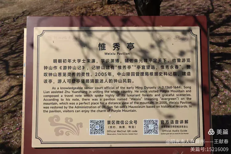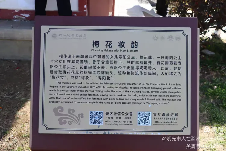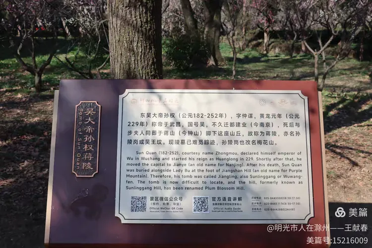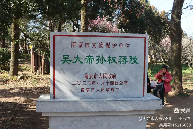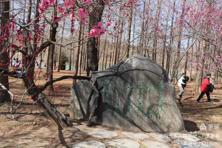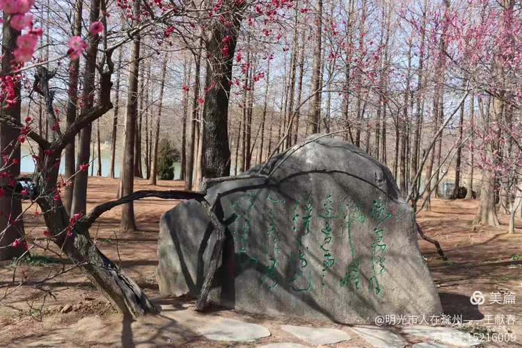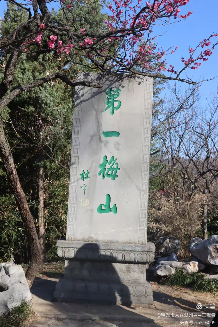 刚过明孝陵神道,就见一块巨石静卧道旁,红字遒劲——“梅花山”三字在晨光里泛着暖意,四周草木初盛,枝条疏朗,光影斜斜地铺在石面,像一页摊开的旧书扉页。我伸手轻抚石面,指尖微凉,却仿佛触到了六朝的风、民国的雨、还有这些年无数脚步踏过的春光。