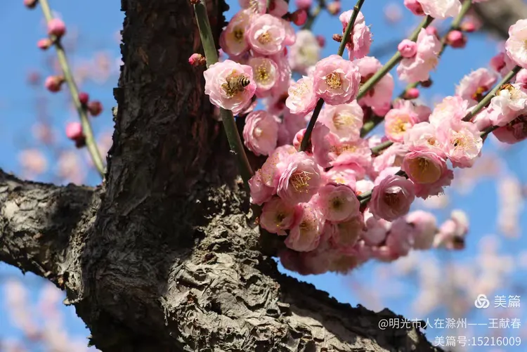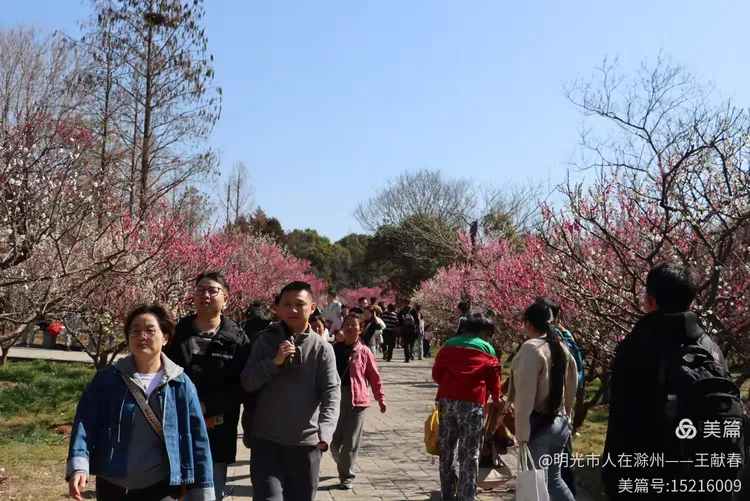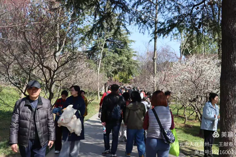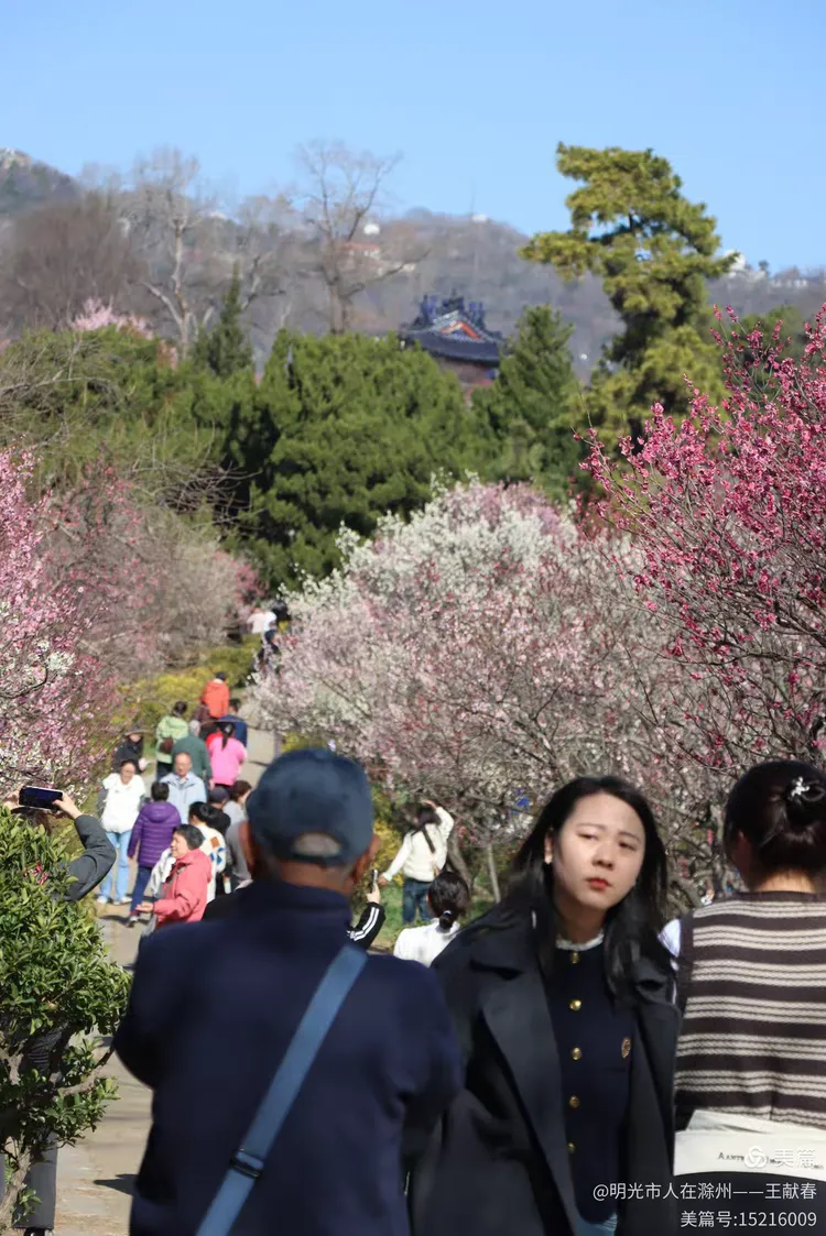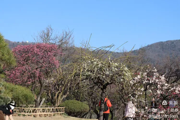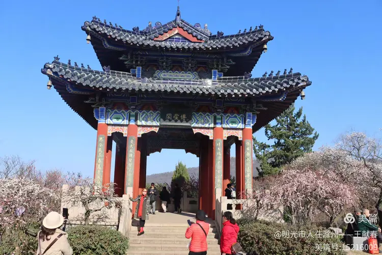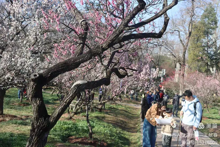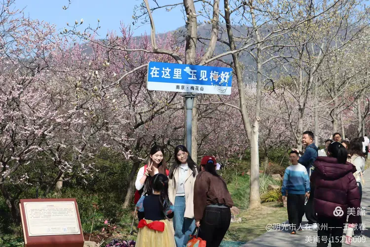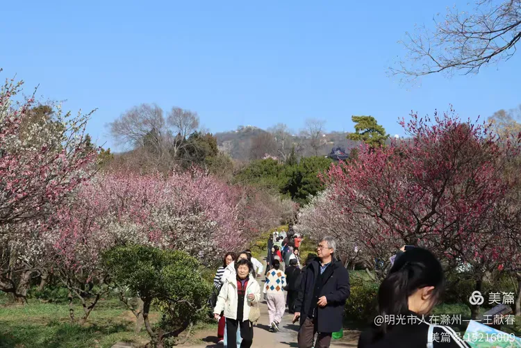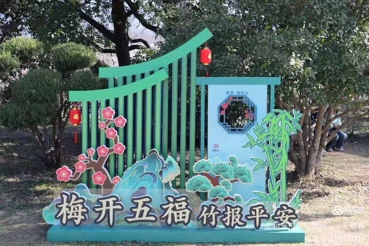 走累了,我在梅道旁的长椅坐下,掏出保温杯喝口热茶。风送来一阵清冽甜香,抬眼望去,整座山仿佛被粉白二色温柔浸透:近处是枝头闹春,远处是山色含烟,再远些,紫金山的轮廓在薄霭里若隐若现。忽然想起碑上那句“梅开五福,竹报平安”,原来梅花山从不单以美示人,它把历史种进土里,把时间酿成香,把每一次重逢,都写成未完待续的春信。