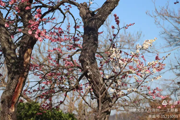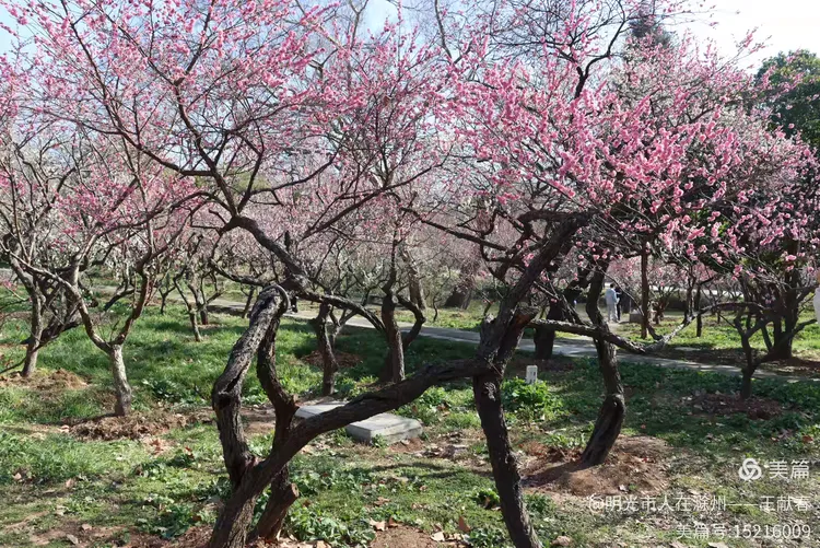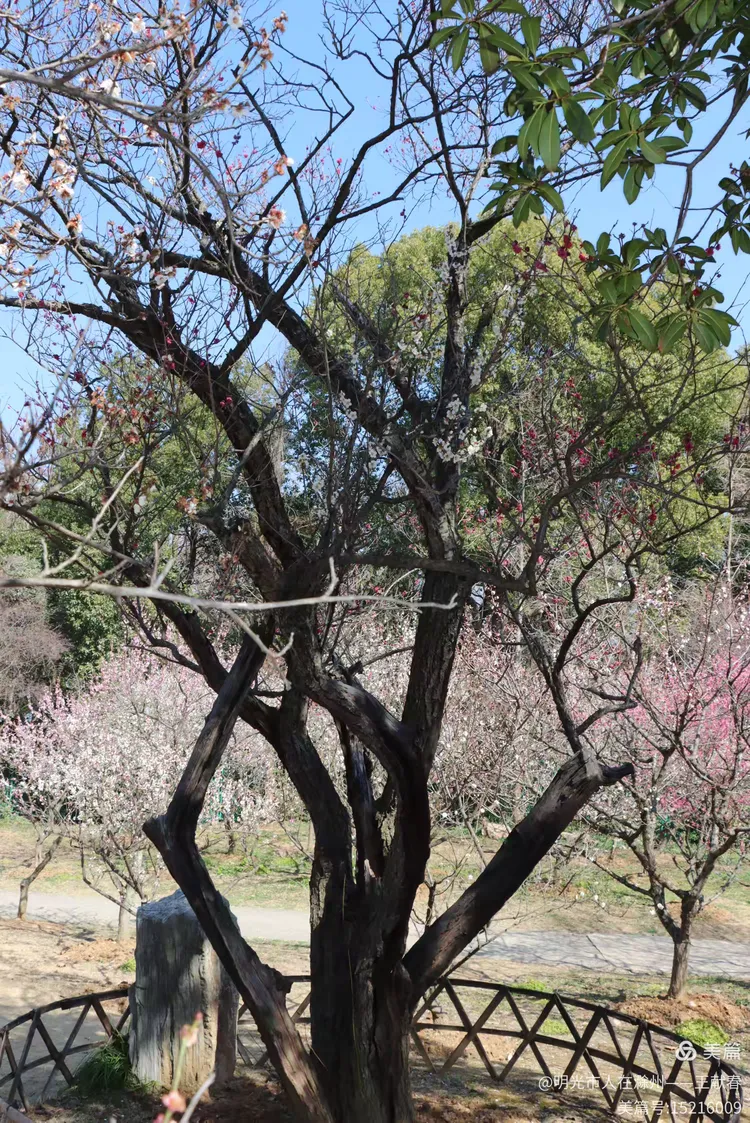 最让我驻足的是那块介绍古梅群的标牌:380个品种,155个国际登录,千余株百年老梅,多是上世纪二十年代末栽下的。我数了数身旁几株,树干粗得需两人合抱,枝杈却依然向上伸展,新花压旧枝,老皮裹新蕊——原来所谓“甲天下”,不只是花多,更是这份生生不息的韧劲。