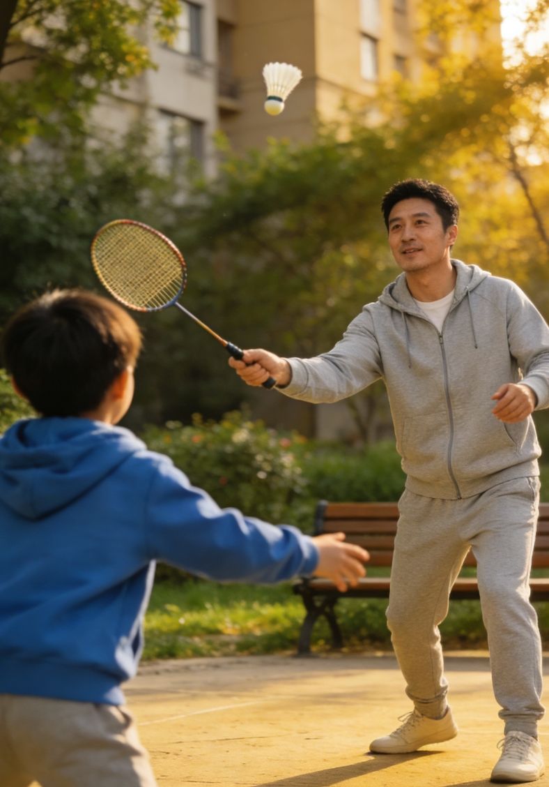 周末的小区公园,风是软的,云是淡的。我陪他打羽毛球。他握着球拍,小小的身子蹦蹦跳跳,动作笨拙却认真,球儿总也接不稳,却笑得咯咯响,满是天真的欢喜。偶尔接住一个,便得意地朝我扬下巴,眼睛亮得像星星。