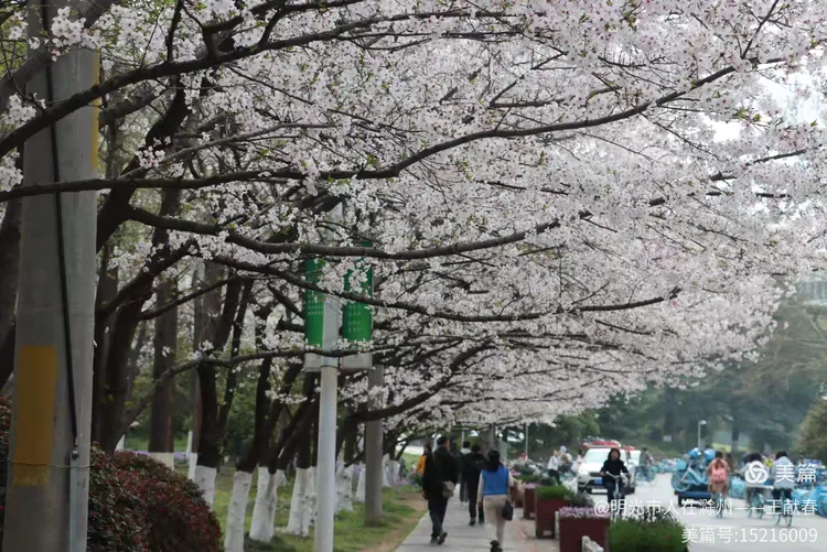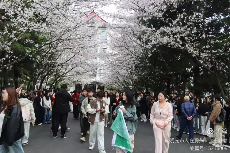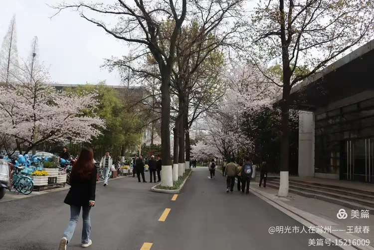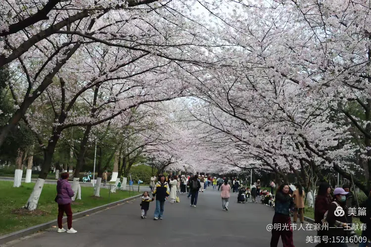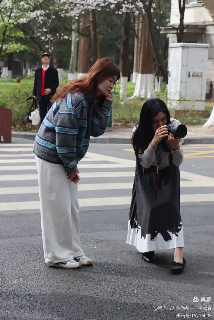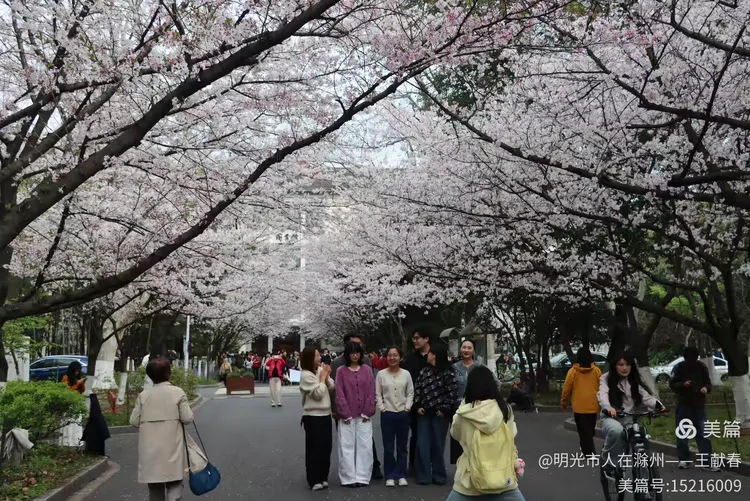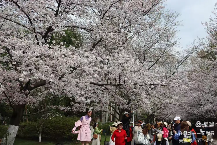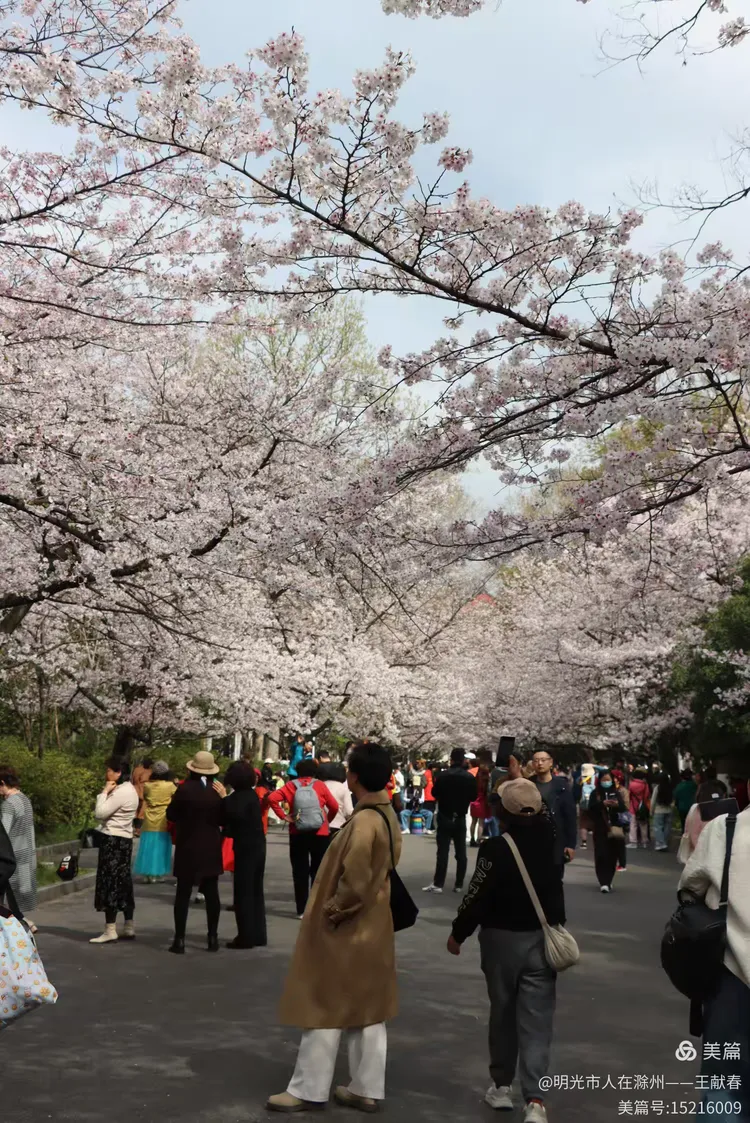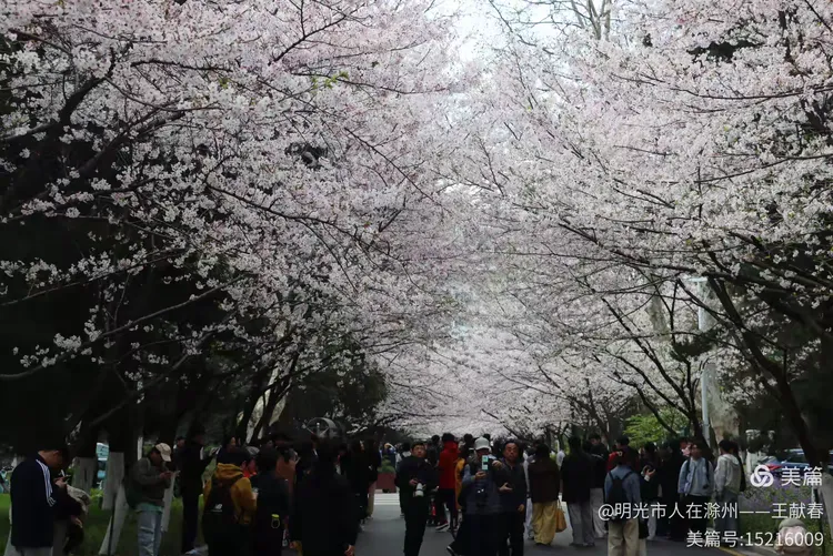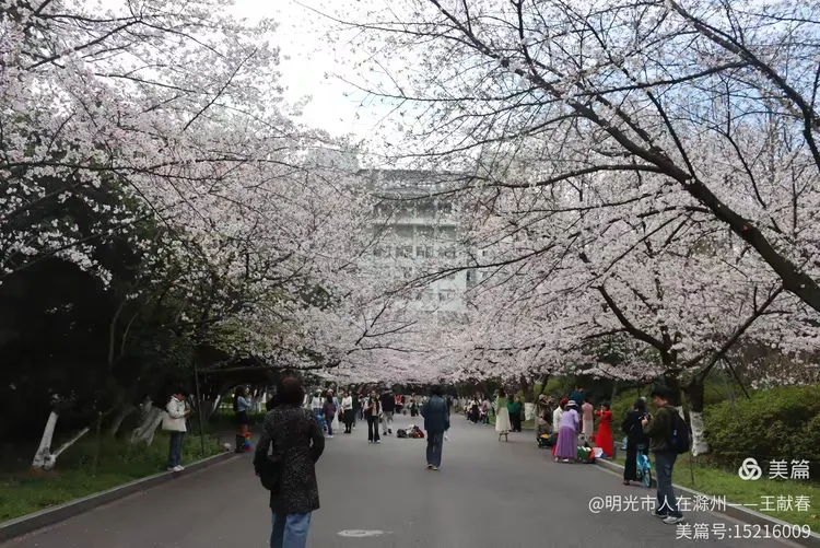 走到中段,人渐渐多了起来。有学生三三两两倚着树干看书,书页被风吹得哗啦响;有老人慢悠悠踱步,仰头时银发被花影染成淡粉;还有穿红衣的姑娘踮脚去够低垂的枝,指尖刚触到花瓣,整枝花就颤巍巍抖落一场小雨。我跟着人流缓步向前,忽然发现树干上钉着小小铜牌,刻着“1964年植”,字迹被岁月磨得微钝,却比新漆的导览牌更让人心里一热——原来我们踮脚仰望的,不只是花,是六十年光阴酿出的一树春光。