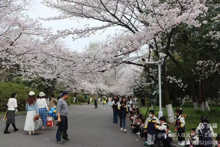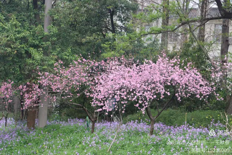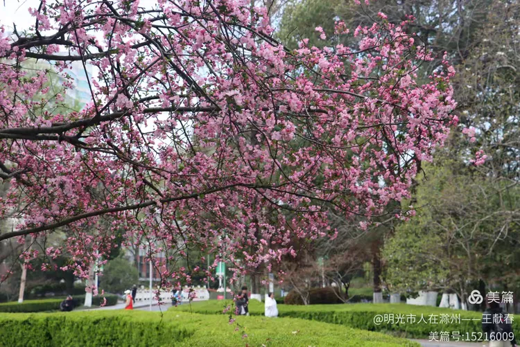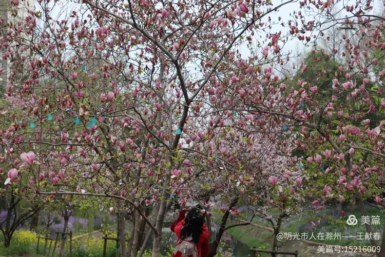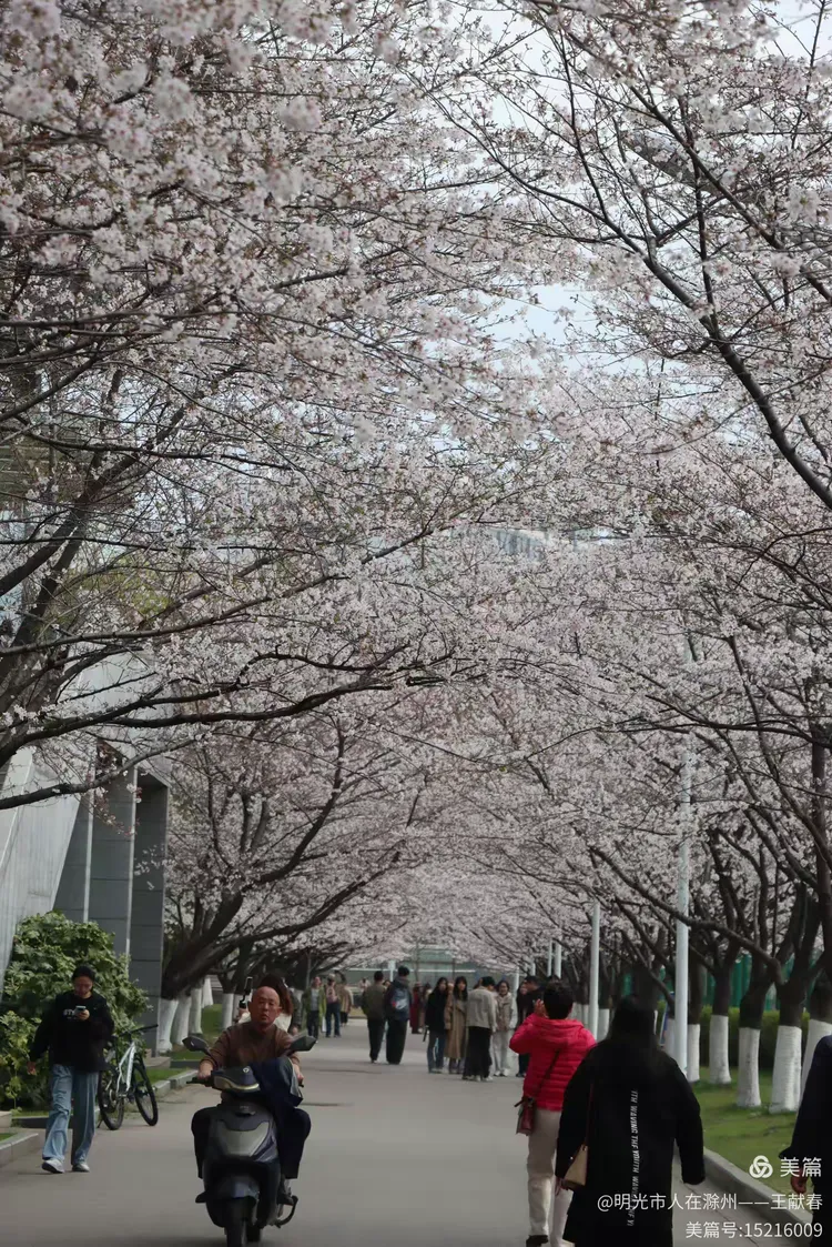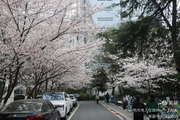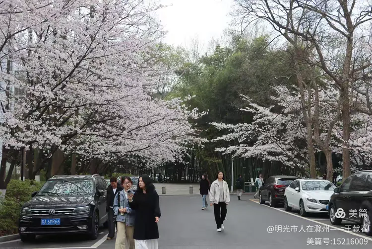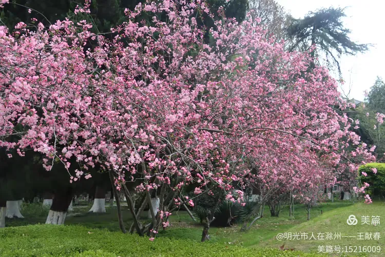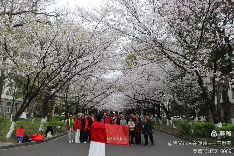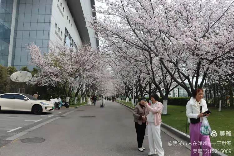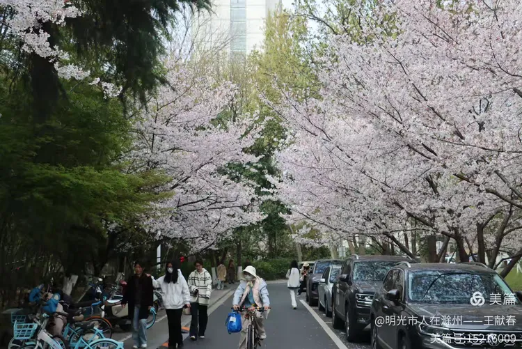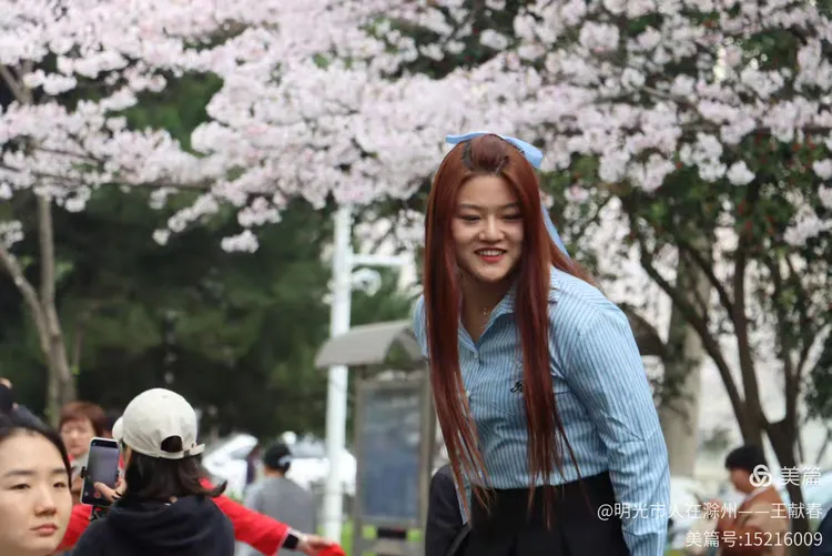走到中段,人渐渐多了起来。有学生三三两两倚着树干看书,书页被风吹得哗啦响;有老人慢悠悠踱步,仰头时银发被花影染成淡粉;还有穿红衣的姑娘踮脚去够低垂的枝,指尖刚触到花瓣,整枝花就颤巍巍抖落一场小雨。我跟着人流缓步向前,忽然发现树干上钉着小小铜牌,刻着“1964年植”,字迹被岁月磨得微钝,却比新漆的导览牌更让人心里一热——原来我们踮脚仰望的,不只是花,是六十年光阴酿出的一树春光。