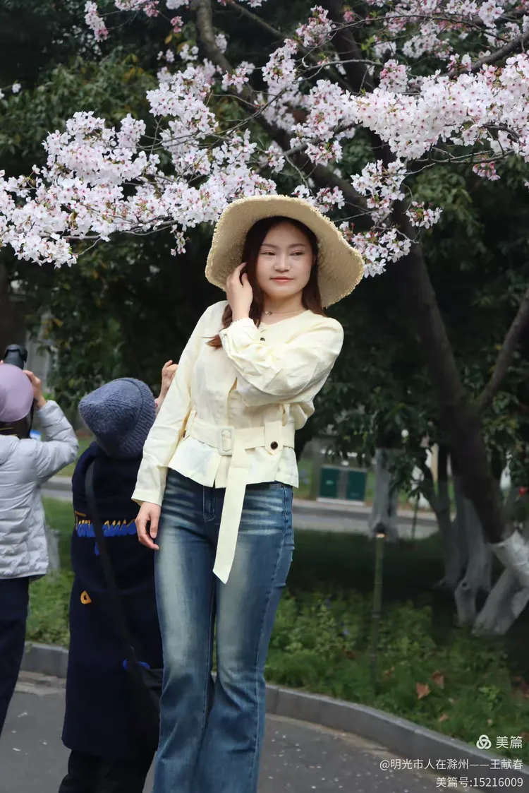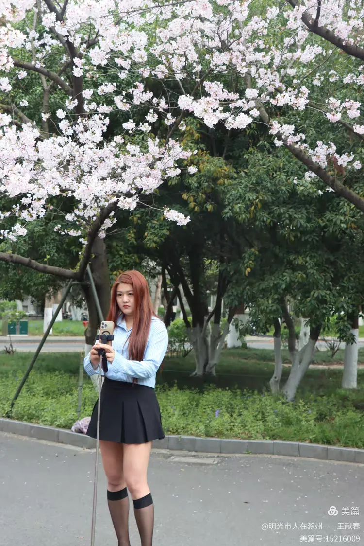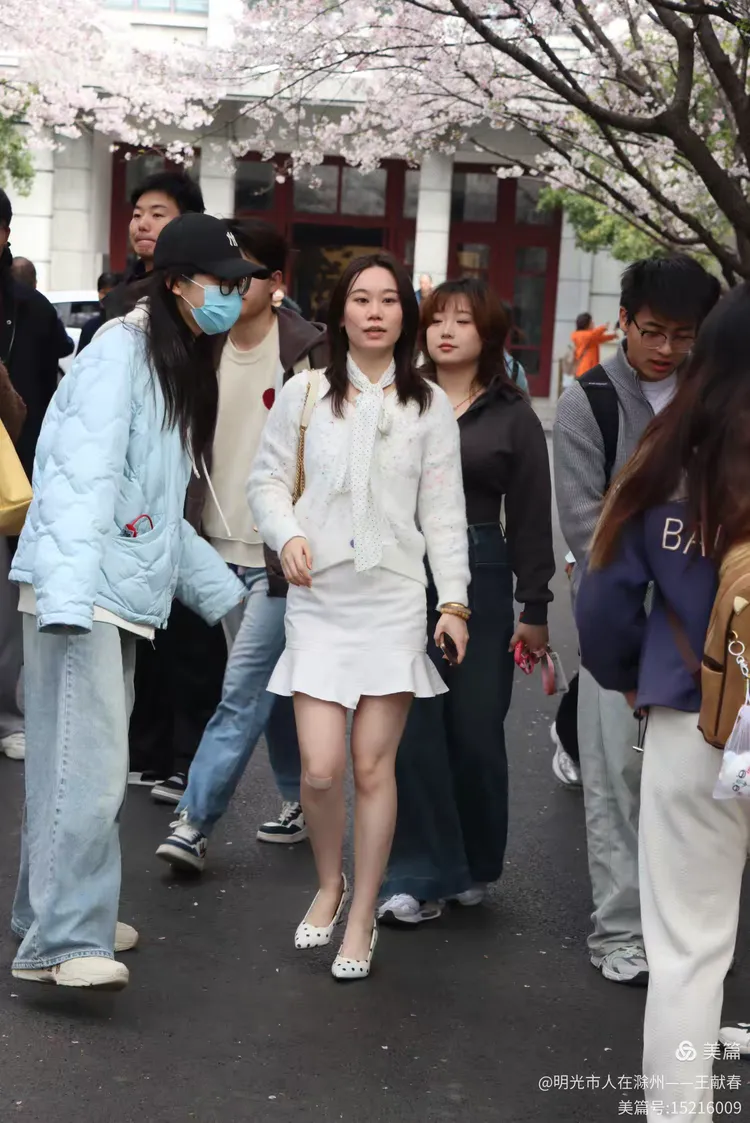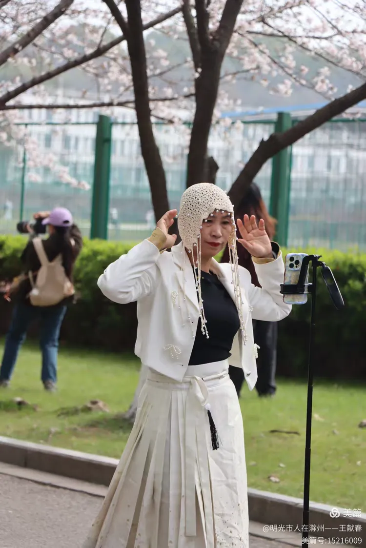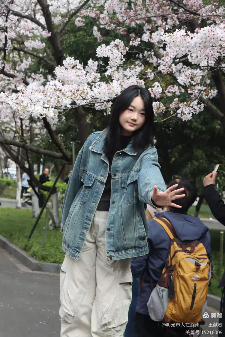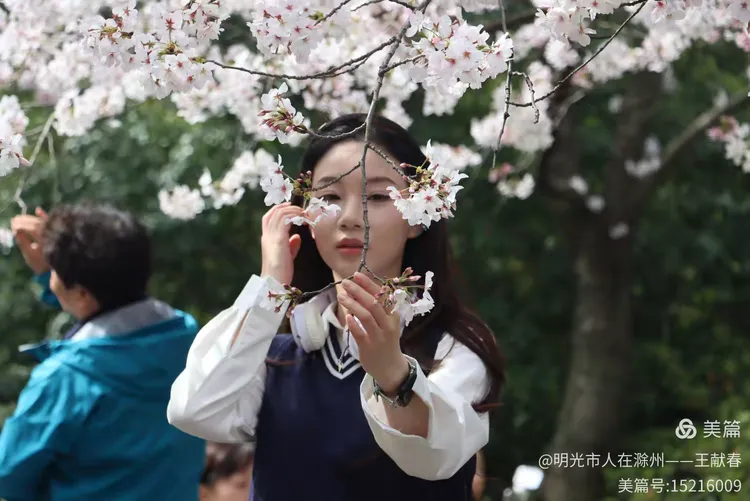 走到中段,人渐渐多了起来。有学生三三两两倚着树干看书,书页被风吹得哗啦响;有老人慢悠悠踱步,仰头时银发被花影染成淡粉;还有穿红衣的姑娘踮脚去够低垂的枝,指尖刚触到花瓣,整枝花就颤巍巍抖落一场小雨。我跟着人流缓步向前,忽然发现树干上钉着小小铜牌,刻着“1964年植”,字迹被岁月磨得微钝,却比新漆的导览牌更让人心里一热——原来我们踮脚仰望的,不只是花,是六十年光阴酿出的一树春光。