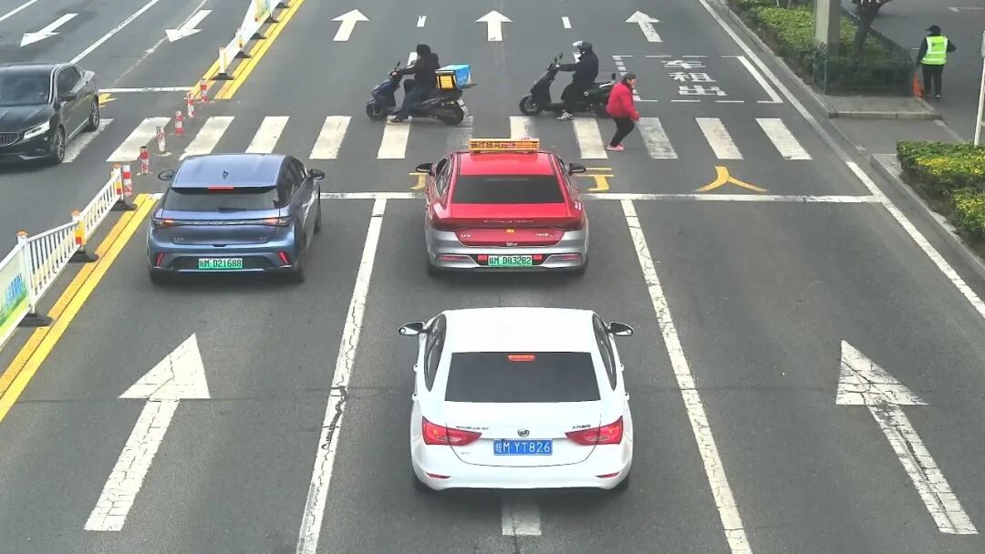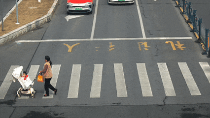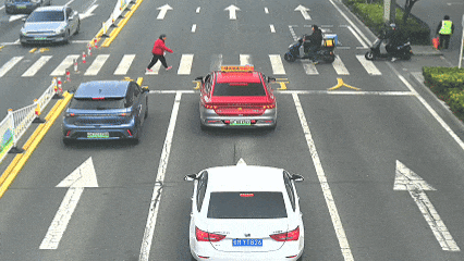 行人、非机动车在通过斑马线前,可采用“招招手”的文明手势,提醒司机停车让行,切勿沉迷低头玩手机等行为。