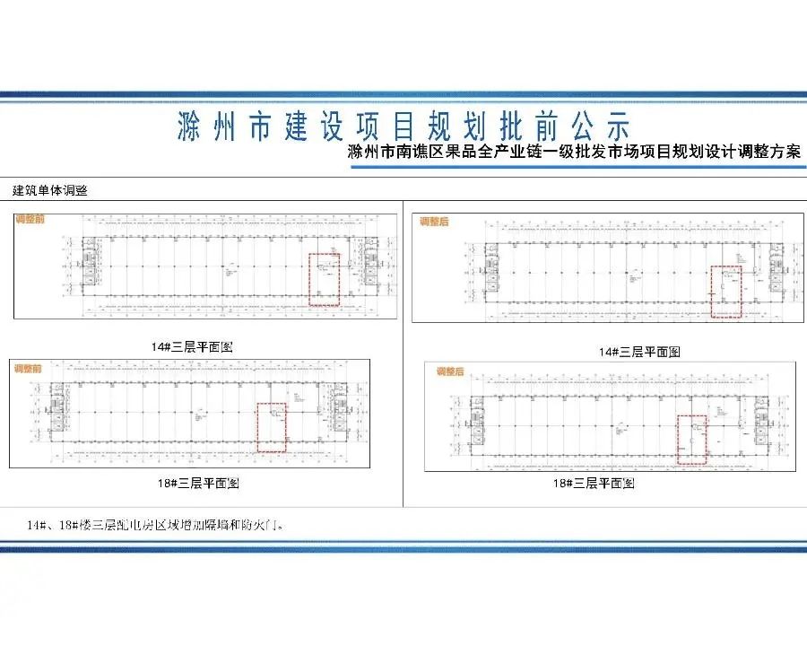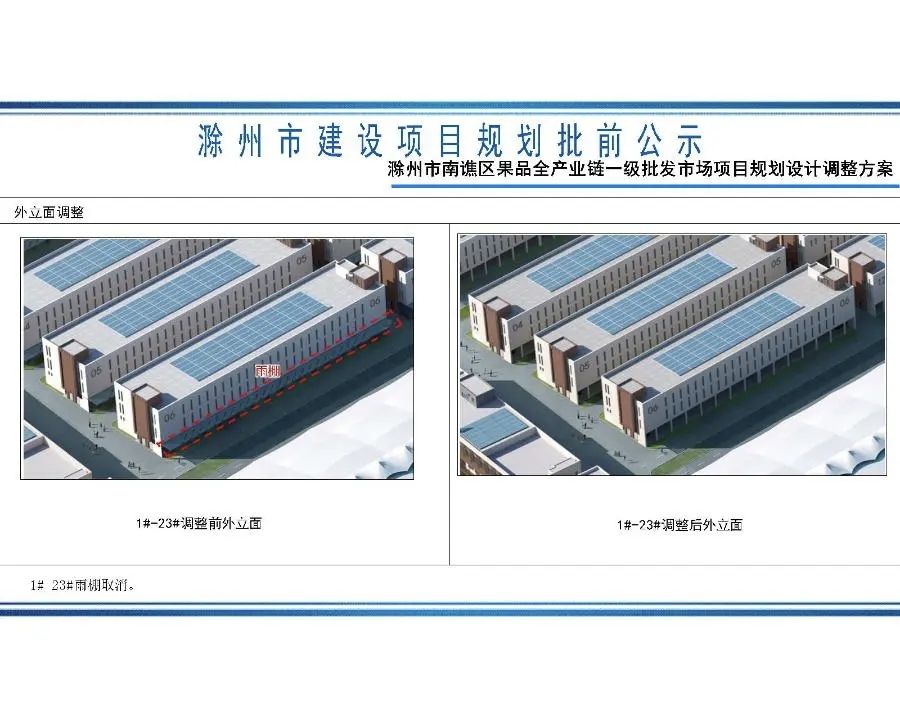 项目位于滁宁大道与文华路交叉口东南侧。总用地面积约268777平方米,建设单位为滁州嘉欣市场管理有限公司。总建筑面积约249182平方米,容积率1.31,绿地率20%,建筑密度38.86%。配建机动车停车位1203辆,非机动车停车位2570辆,现申请以下调整内容:1、建筑单体调整;2、外立面调整。